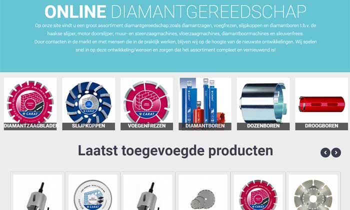 Op onze site online-diamantgereedschap.nl vindt u een groot assortiment diamantgereedschap zoals diamantzagen, voegfrezen, slijpkoppen en diamantboren t.b.v. de haakse slijper, motor doorslijper, muur- en steenzaagmachines, vloerzaagmachines, diamantboormachines en sleuvenfrees.