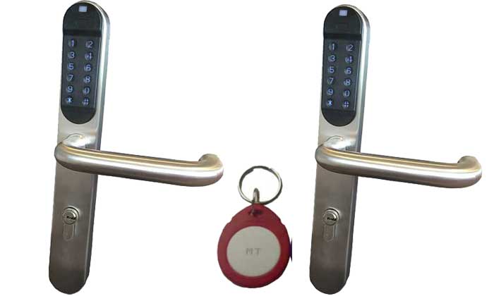 Middels een transponder of een correcte code ingave wordt de krukbediening aan de buitenzijde vrij gegeven. De kruk aan de binnenzijde is altijd vrij bedienbaar voor een directe doorgang De cilinderbediening geeft altijd nog de mogelijkheid om met de sleutel het slot te bedienen.